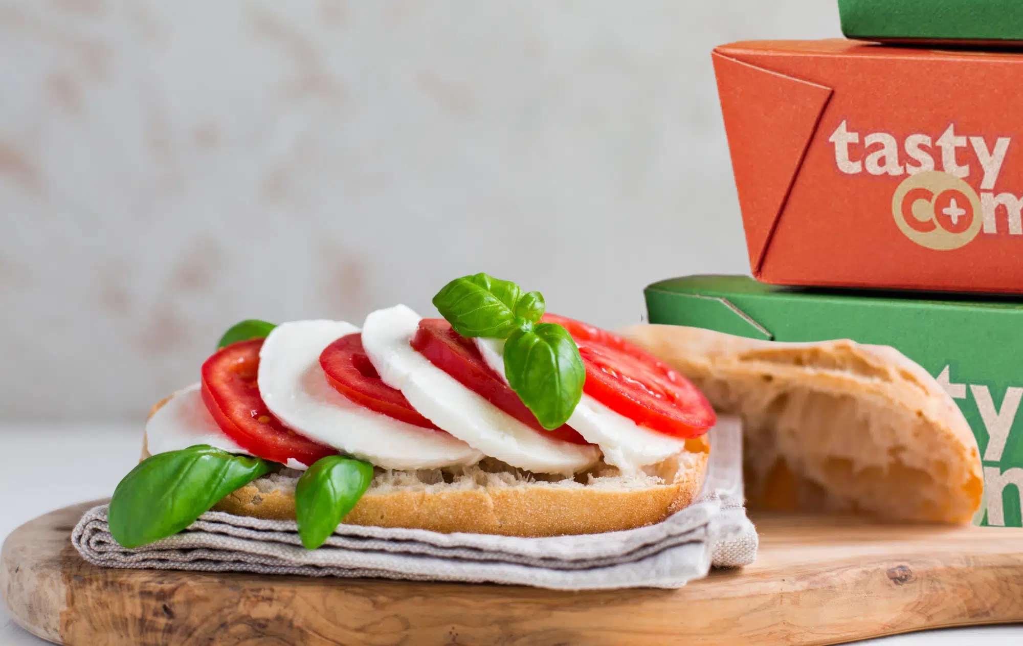 Caprese SandwichFresh sliced tomato and mozzarella with basil and balsamic glaze served on ciabatta