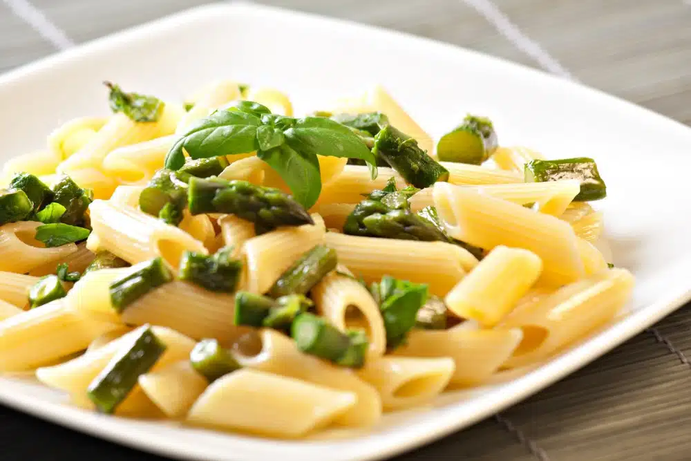 - When pasta is done, heat a heavy skillet or wok over medium-high, then add olive oil. When oil starts to ripple across bottom of pan, add asparagus. Stir frequently; add a pinch of salt. When asparagus has become done enough (but still crunchy), add white beans. You may need to add a bit more olive oil at this point.
